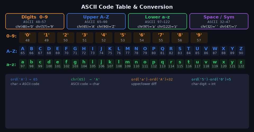 ord(c) - ord('0') # 문자 숫자 → 정수 (0~9)