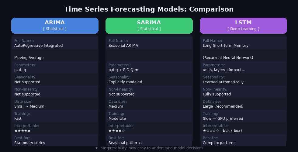 | ARIMA | SARIMA | LSTM | |