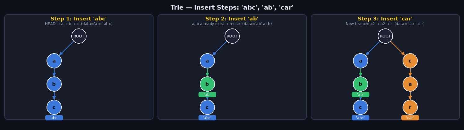 'abc', 'ab', 'car' 를 순서대로 삽입하는 과정입니다.